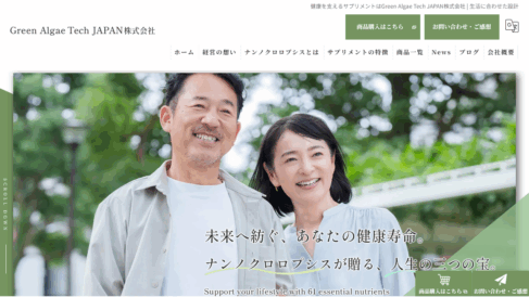 Green Algae Tech JAPAN株式会社は、人生百年時代を迎えた現代において「健康寿命の向上」という重要な課題に取り組み、微細藻類ナンノクロロプシスを活用したサプリメントを展開しています。安価で飲みやすく、希少な栄養成分の宝庫であるナンノクロロプシスは、副作用の心配もない安全性の高い食品として、グローバルレベルでの健康寿命向上の最適なソリューションとして位置づけられています。
