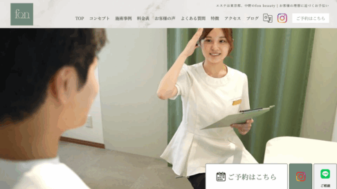 fon beauty【肌質改善/育毛促進】は、お客様一人ひとりに寄り添い、お悩みを解決するサポートを行うため完全予約制を採用しています。シンプルなデザインに統一し、リラックスしてお過ごしいただける空間づくりを目指したエステサロンとして、中野区で営業しています。