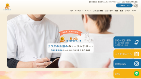 肩こりや腰の違和感、慢性的な疲れといった身体の不調を根本からサポートする整体サロンを、島根県雲南市エリアで営んでいます。あったカイロプラクティックでは、骨格や姿勢のバランスを整えるカイロプラクティックを中心とした施術により、一人ひとりの身体の状態に合わせたケアを提供しています。カイロプラクティックは、背骨や骨盤の歪みを手技によって調整し、神経系やリンパ系の働きを整えることで、身体が本来持っている自然治癒力を高める施術方法です。痛みの場所そのものではなく、痛みの原因にアプローチすることで、その場しのぎではない根本的な改善を目指しています。