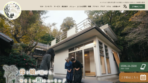 母と娘で営む和と洋を組み合わせた落ち着いた空間で、モダンで温かみのある癒しの時間をお楽しみいただけます。古き良き日本の心を重んじた落ち着きのある和モダンな空間で、母と娘が一人ひとりに寄り添って対応し、アットホームで信頼感のある雰囲気の中自分自身の心と身体に向き合う穏やかな時間を過ごしていただけます。人と人との繋がりを大切にし生涯を通してお客様に寄り添えるサロンであることを大切に考え、施術中の時間だけではなく日々のちょっとした不安や嬉しい出来事なども気軽に話せる温かい関係づくりを心がけています。 多気駅からお車で約6分、斎宮駅から徒歩約30分の場所に位置し、敷地内には広い駐車場を完備しているためお車でも安心してお越しください。自然に囲まれた静かな立地にある隠れ家のような雰囲気の空間で、日常の喧騒から離れ静かで穏やかな時間を過ごせるため、リラックスしながら自分自身と向き合う時間をお楽しみいただけます。完全予約制で9時から22時まで営業しており、お一人おひとりとゆっくり向き合う時間を確保しています。