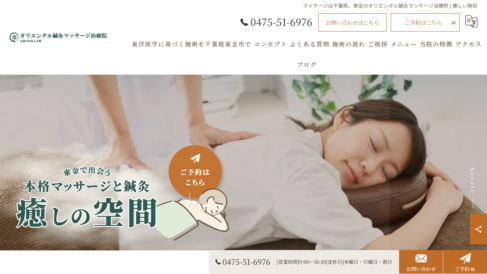 きゅう師、はり師、あん摩マッサージ指圧師の国家資格を持つ施術者が、オリエンタル鍼灸マッサージ治療院でお客様の身体の状態や生活習慣に基づき、個別に鍼灸やマッサージを組み合わせた施術を提供しています。お客様によって痛みの原因は異なるため、施術前には丁寧にお話を伺い、原因を追求していきます。経験豊富な施術者が担当するため、肩こりや腰痛、膝痛、足の痺れ、頭痛、めまい、自律神経の乱れによる身体の不調など、幅広いお悩みに対して柔軟に対応することが可能です。