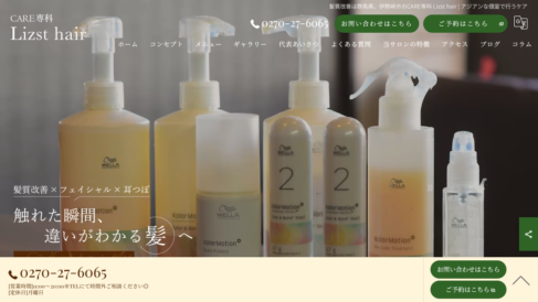 ケア専科 Lizsthairは、髪質改善を中心としたメニューに加え、フェイシャルや耳つぼ、セルフネイルといった多彩なオプションを揃え、ヘアケアと並行して肌や手先のケアまで一度に楽しめるトータルビューティーの空間を提供しています。複数の美容目的を一か所でまとめて叶えられるため、忙しい方でも効率よく美容時間を確保することができます。 ホームページではよくある質問や施術ブログ・コラムも充実しており、初めての方も来店前に十分な情報を得て、安心してご利用いただける体制を整えています。