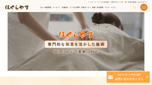 株式会社ほぐしやす | 疲れと不調を手軽にケアする中野のリラクゼーションサロン