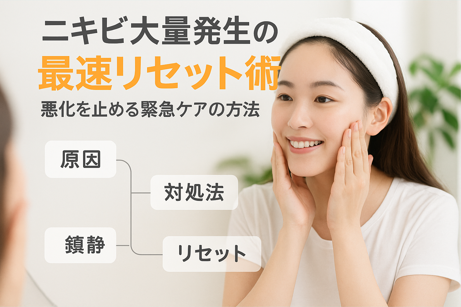 ニキビ大量発生が突然起きたときは、原因の中心である皮脂の過剰分泌と毛穴の詰まり、バリア低下を同時にケアすることが重要です。焦らず刺激コントロールと保湿の両立を継続してください。